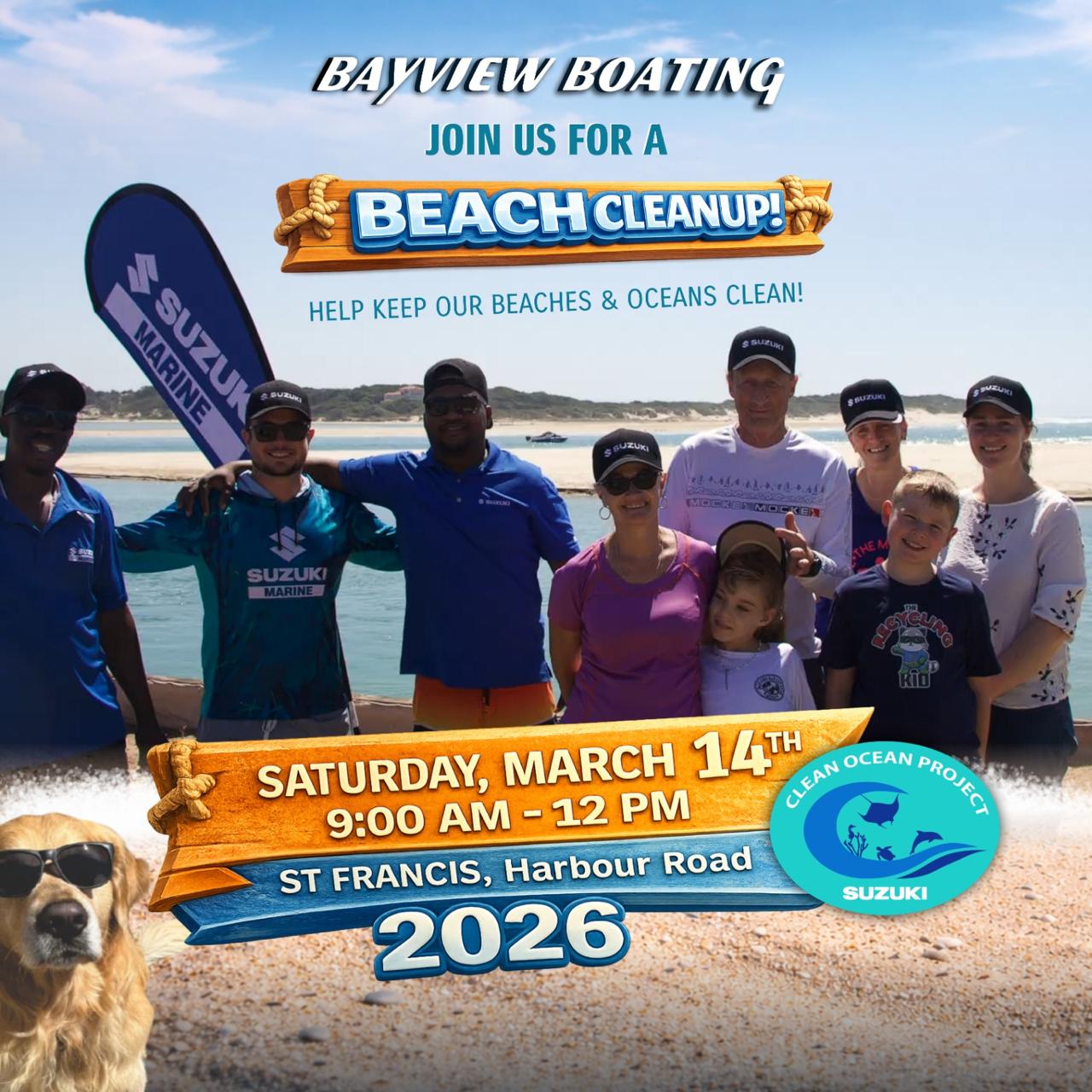 Join us for the Bayview Boating, Suzuki Clean Ocean Project, Beach Clean Up on 14 March 2026