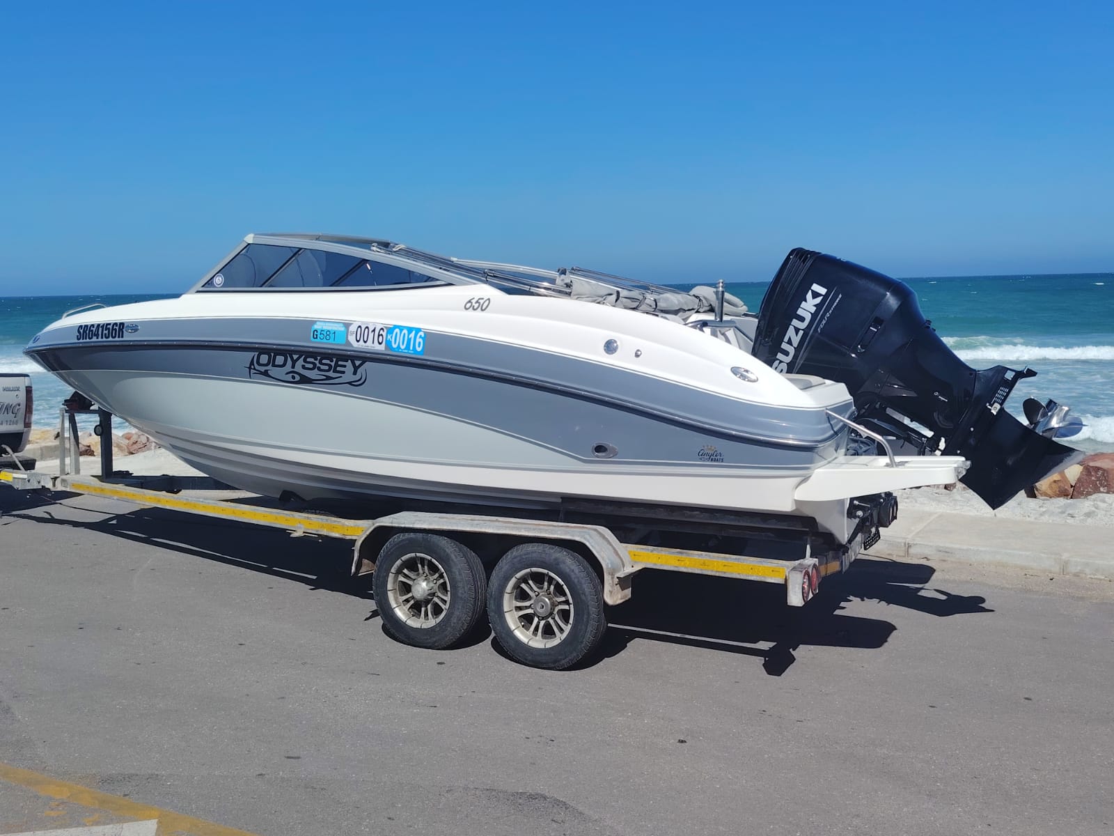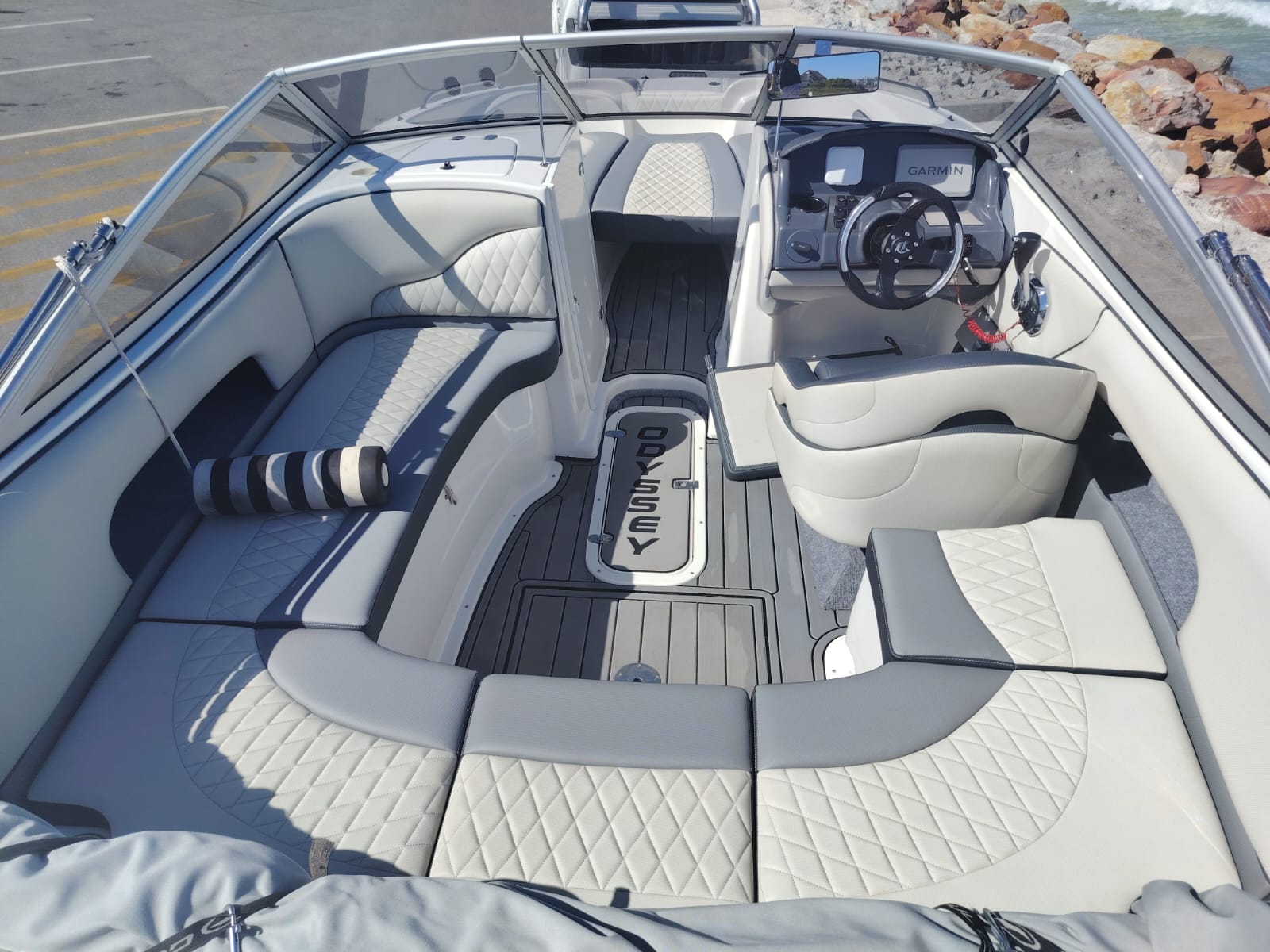 Recently refurbished, the Odyssey 650 is in pristine condition, featuring new upholstery, a sun canopy, Garmin chart plotter, Bluetooth sound system, and stainless steel reboarding ladder. Its rock-solid hull ensures unmatched stability in rough water, while the spacious deck is perfect for fishing, family outings, or adrenaline-packed watersports.